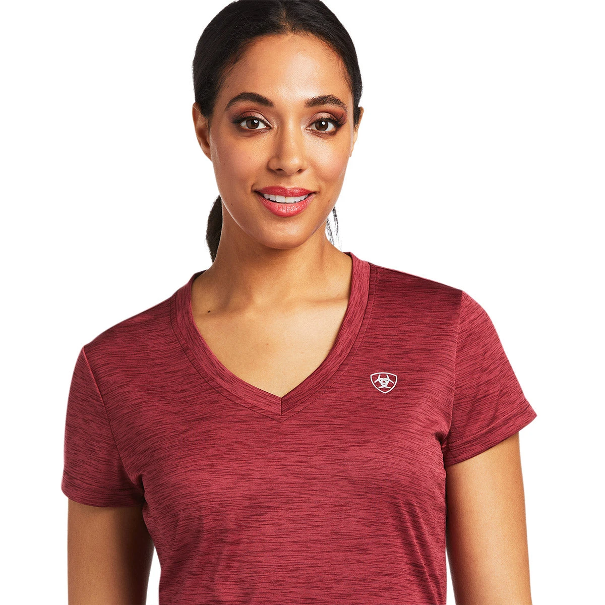 Ariat Laguna Short Sleeve Ladies Tee features sun protection technology to protect you from ultraviolet rays, heat series technology and moisture movement designed to keep you cool and comfortable wicking away moisture. All of these great features combine to make an ideal summer shirt. Perfect for everyday wear, riding, and work outs!