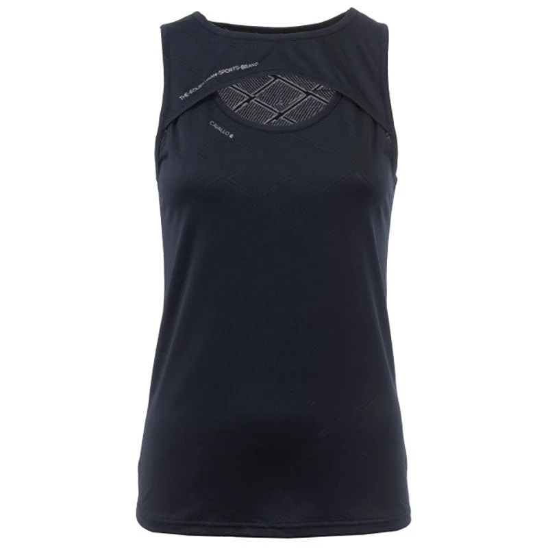 The Cavallo Finja Sleeveless Ladies Shirt has a structured round neck with a sporty front opening for ventilation. The technical fabric is lightweight and moisture-wicking and is lightly fitted to be flattering yet comfortable. This sleeveless shirt is perfect for warm weather riding, working out, or time in the sun, and will be a favorite for this summer.