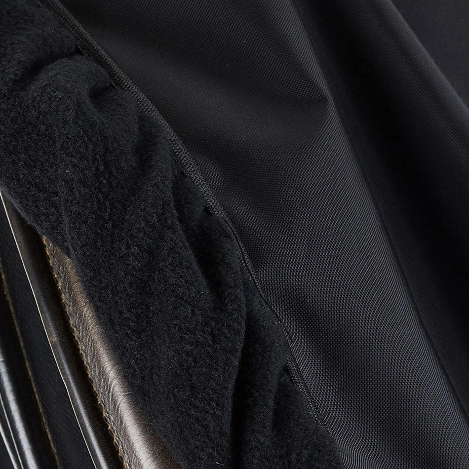 Protect your investment with the Centaur Dressage 420D Saddle Cover. Made of durable 420 denier cordura, this waterproof and breathable slip cover is lined with plus fleece, further keeping your saddle safe from scrapes, scuffs, and excess moisture. Made to fit all sizes of dressage saddles, up to even the longest of flaps. Customize with a your initials, barn name, or logo to make it all your own!