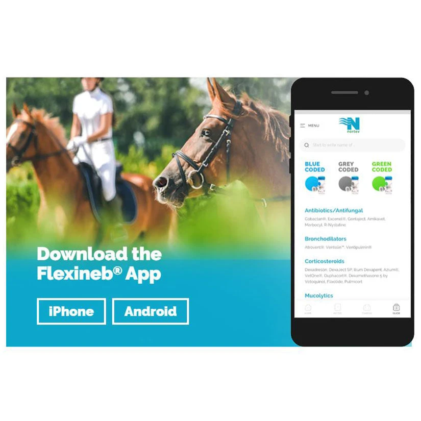 The Flexineb E3 System is a portable silent equine nebulizer for delivering aerosolized drugs and natural therapies to the airways of the horse. The soft flexible mask fits over the horses face and creates a good seal by tightening the strap around the horse’s head. A good seal is important to maximize inhalation of nebulized drugs and natural products offering relief of the following common respiratory tract disorders: Recurrent Airway Obstruction (RAO) or Heaves, Inflammatory Airway Disease (IAD), and Exercise-Induced Pulmonary Hemorrhage (EIPH).