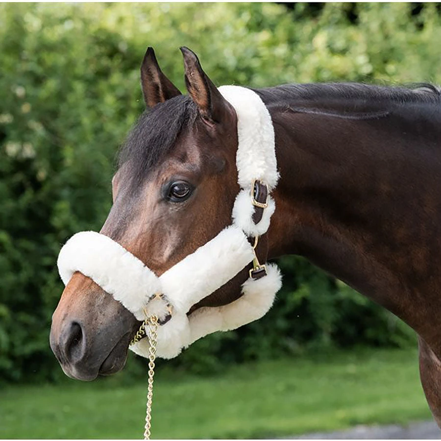 Protect your horse while traveling with this Sheepskin Shipping Halter by Perri’s Leather. Completely covered with natural sheepskin for your horse’s complete comfort, complete with soft, hand rubbed edges. Made with top quality premium leather and solid brass hardware. Perri’s Leather products are made by local Amish leather workers. Finished with a double buckle crown and snap at the throat.