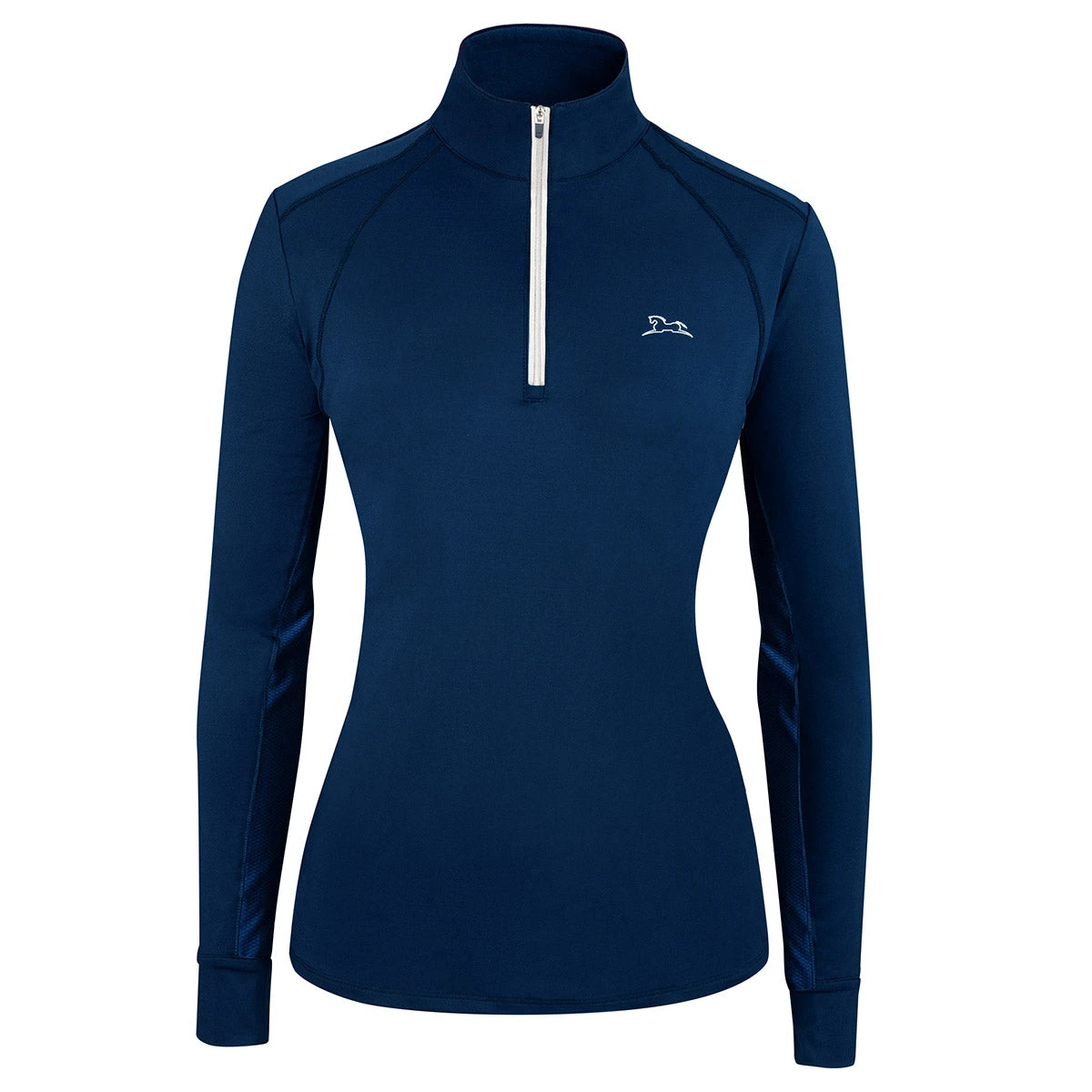The RJ Classics Sienna Jr 37.5 Ladies Quarter Zip gives ever rider that classic, yet sporty look that will never go out of style. The patented thermo-regulation technology has proven to help your body manage its core temperature and therefore, increase stamina. It keeps you comfortable by helping your body to maintain an optimum core temperature of 37.5 Celsius (99.5 Fahrenheit) which is ideal for peak athletic performance. The particles are naturally derived and work for the life of the product (it will never wash out!). Some colorways feature a unique patterned mesh, while others feature a tonal mesh.